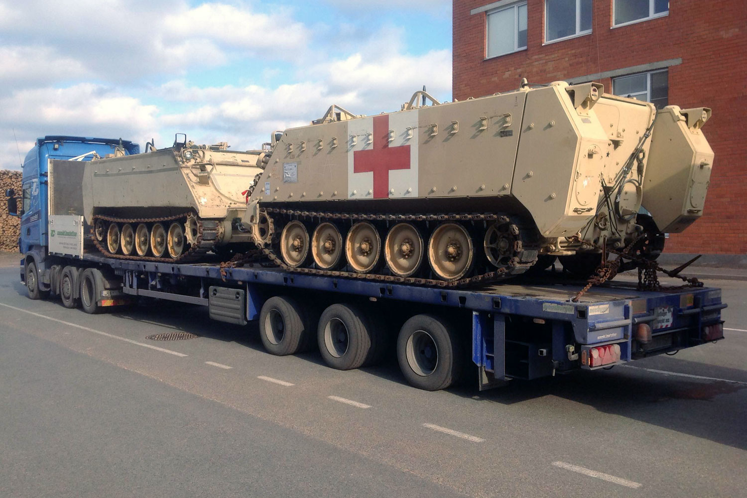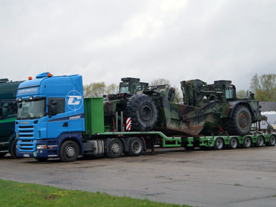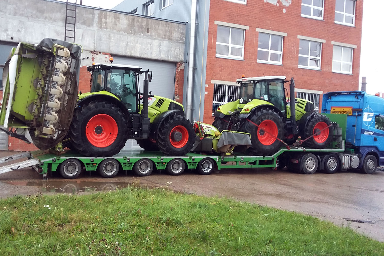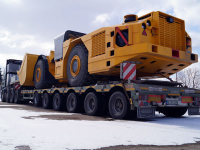 Modern 3- and 4-axle trucks with GPS positioning and modern communication technology, as well as various extendable special trailers (low bed, semi low-loader, platform-trailer, etc.) are available for your transport.